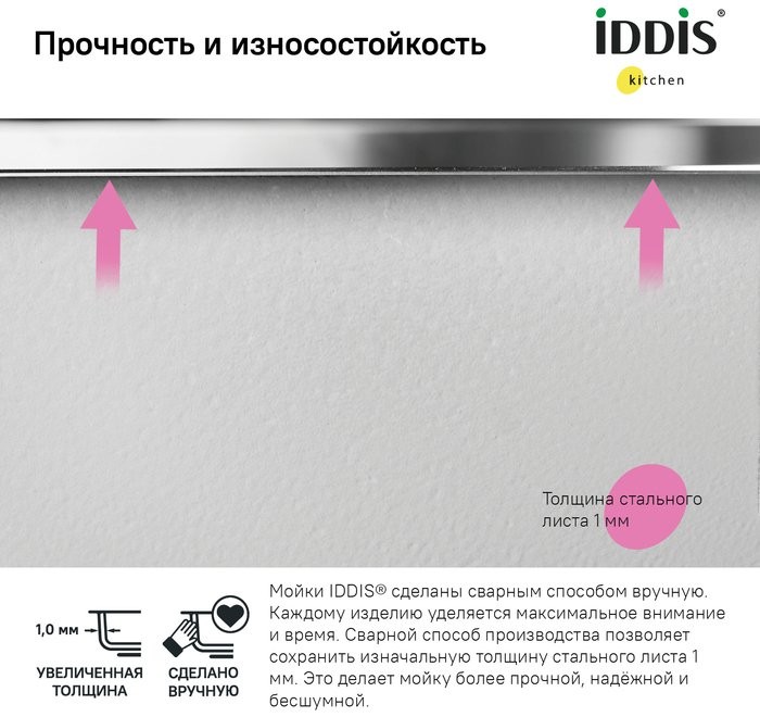 • Комплектация: Мойка кухонная IDDIS Edifice