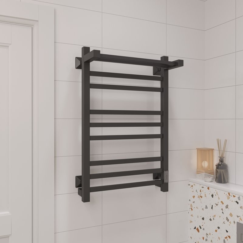 - Комплектация: Полотенцесушитель электрический EWRIKA Пенелопа КВ, 80х50, с полкой, черный