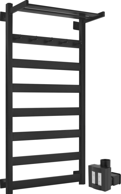 - Комплектация: Полотенцесушитель электрический Полотенцесушитель электрический Secado Комано 1 КСП , 105x55 см, скрытое подключение слева, матовый черный, лесенка, с полкой