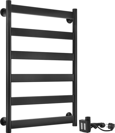 - Комплектация: Полотенцесушитель электрический Полотенцесушитель электрический Secado Комано 2 , 85x55 см, скрытое подключение слева, матовый черный, лесенка