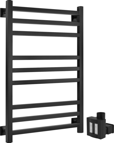 - Комплектация: Полотенцесушитель электрический Полотенцесушитель электрический Secado Корато 3 , 85x55 см, подключение слева, матовый черный, лесенка