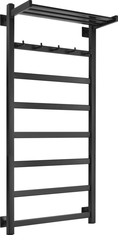 Описание для товара Полотенцесушитель электрический Secado Турин 1 СП 100x55 см, подключение справа, матовый черный, лесенка, с полкой скоро обновится