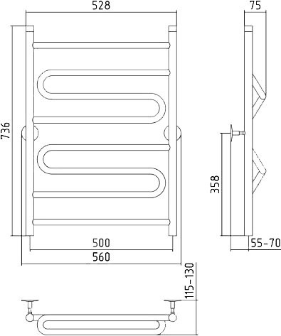 - Комплектация: Полотенцесушитель водяной Полотенцесушитель водяной Стилье Версия-Б2 00612-6050 70x60 см, глянцевый хром, лесенка