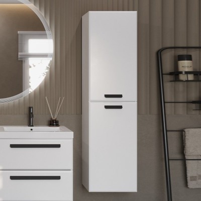 - Комплектация: Шкаф пенал для ванной Cezares Eco 40 универсальный, bianco lucido, без ручек; Ручка для мебели Cezares Eco RS156GR.3/96, серая