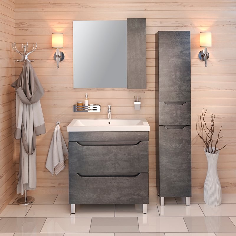 - Комплектация: Шкаф пенал для ванной Emmy Стоун, L, серый бетон