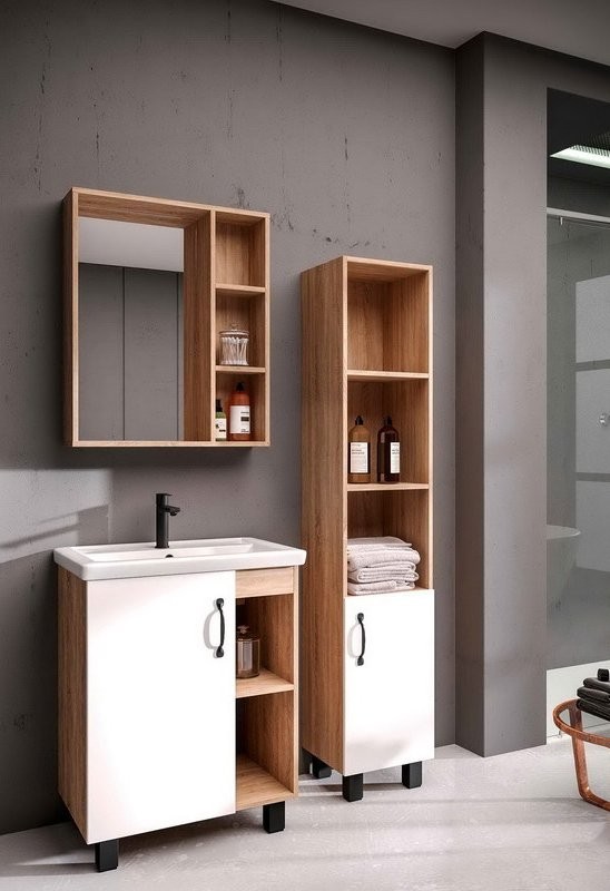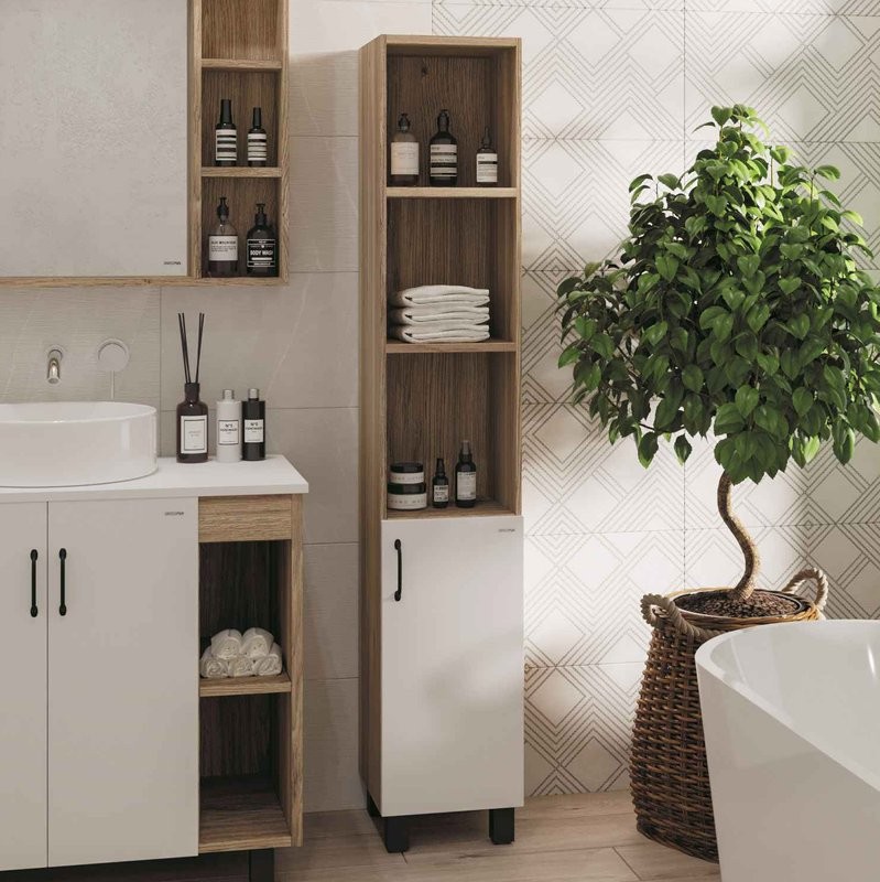 - Комплектация: Шкаф пенал для ванной Grossman Флай 30, R, дуб сонома, белый