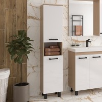 - Комплектация: Шкаф пенал для ванной Misty Крафт, белый, светлое дерево