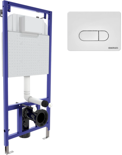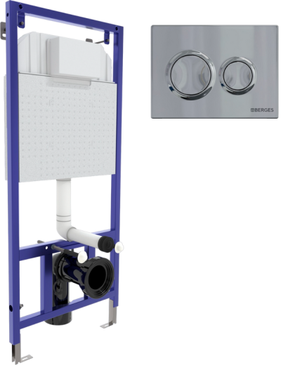 - Комплектация: Система инсталляции для унитазов Berges Novum 040233, с кнопкой смыва, хром глянец