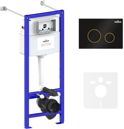 - Комплектация: Система инсталляции для унитазов Lavinia Boho RelFix 77010052, 5 в 1 с кнопкой смыва и дозатором, белый, золотой глянец