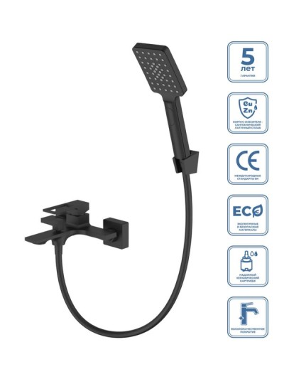 • Комплектация: Смеситель для ванны с душем Смеситель для ванны с душем Wonzon & Woghand WW-C2501-BGG темный графит