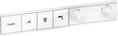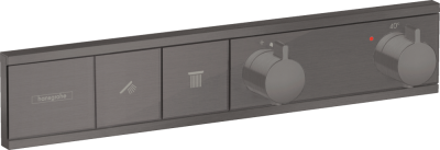 - Комплектация: Скрытая часть Скрытая часть Hansgrohe RainSelect 15312180; Термостатический смеситель встраиваемый Термостатический смеситель встраиваемый Hansgrohe RainSelect 15382340 для душа, шлифованный черный хром