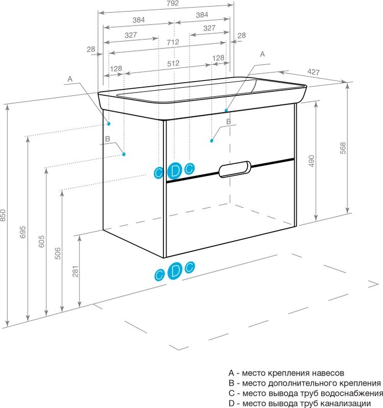 - Может комплектоваться следующими раковинами: Мебельная раковина AQUATON Адриана 80