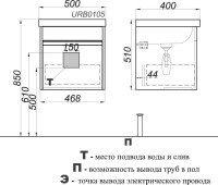 - Комплектация: Тумба под раковину Aqwella Urban, 50, подвесная, дуб давос