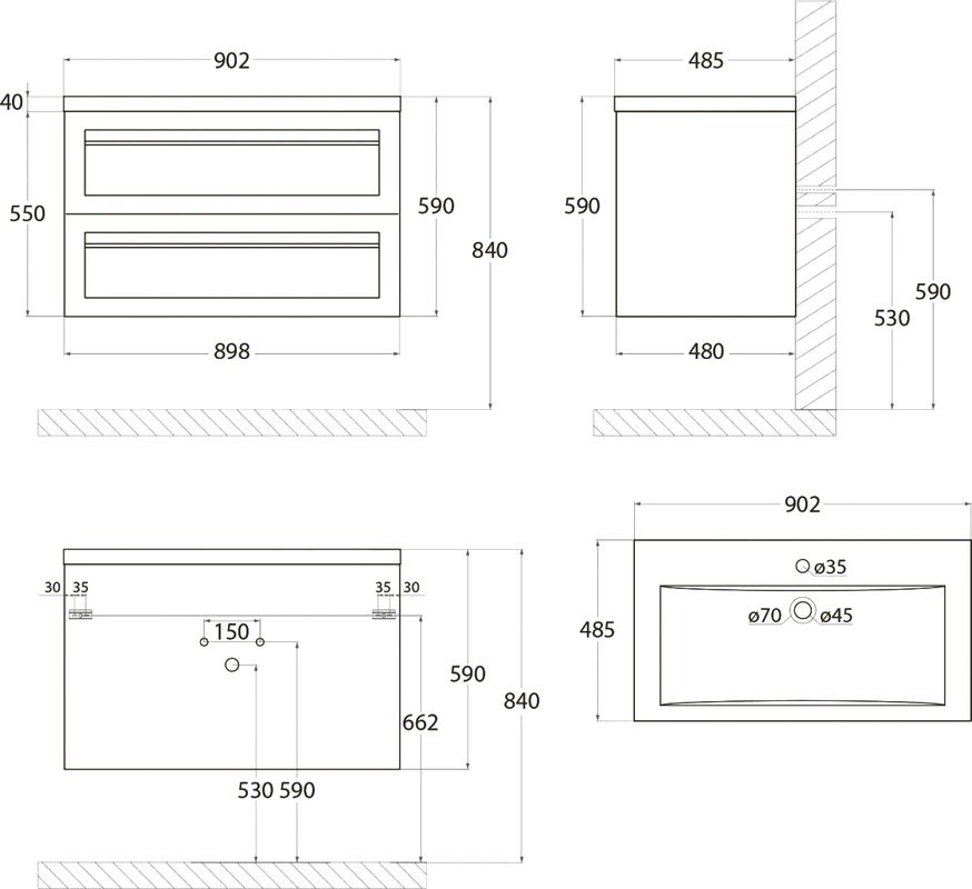 - Комплектация: Тумба под раковину Art&Max Platino, 90, подвесная, светло-серая матовая