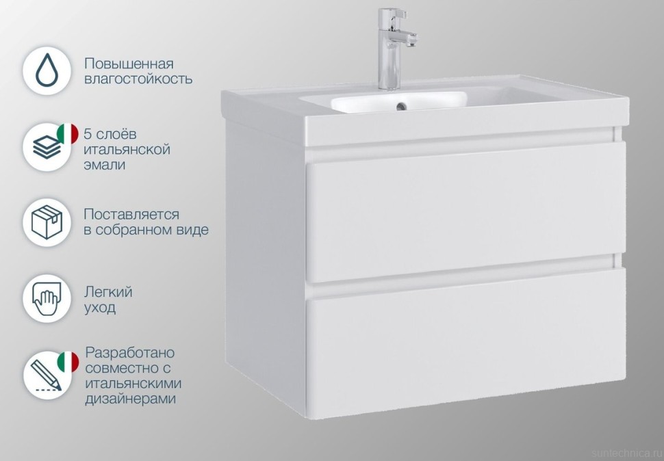 - Комплектация: Тумба под раковину SanStar Riana, 70 подвесная, белая