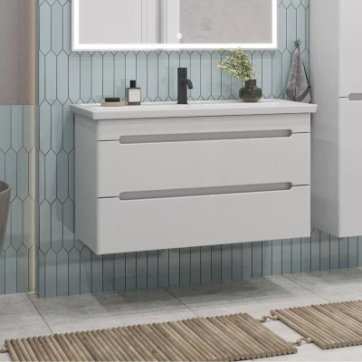 - Комплектация: Тумба под раковину SanStar Trend, 80 подвесная, бетон пайн, белая