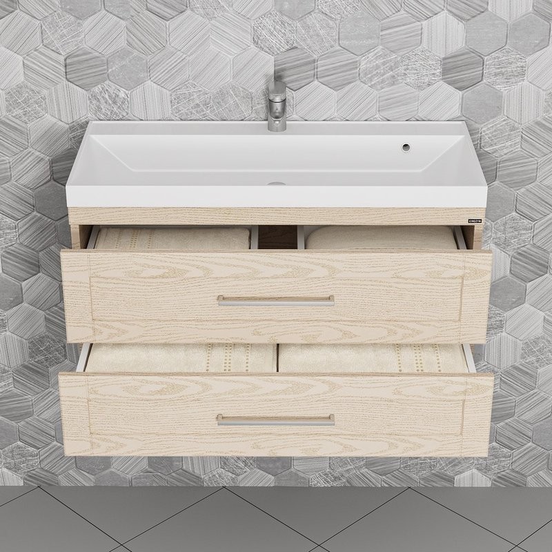 - Комплектация: Тумба под раковину СаНта Венера 100, подвесная, дуб бежевый