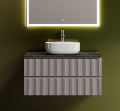 Описание для товара Тумба под раковину со столешницей La Fenice Cubo Twin 90 подвесная, cappuccino , бежевая матовая, столешница белый мрамор, ручки белые скоро обновится