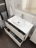 - Комплектация: Тумба под раковину La Fenice; Столешница в ванную под раковину La Fenice Granite FNC-03-PL01-90, белый мрамор; Ручка для мебели La Fenice Cubo FNC-04-CUB-B-80 белая