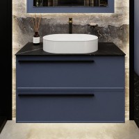 Описание для товара Тумба под раковину со столешницей La Fenice Elba Twin Blu Grigio 80 подвесная, синяя матовая, столешница черный мрамор скоро обновится