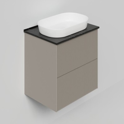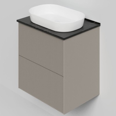 Описание для товара Тумба под раковину со столешницей La Fenice Terra Twin 60 подвесная, grigio, серо-зеленая матовая, столешница черный мрамор скоро обновится
