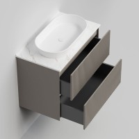 Описание для товара Тумба под раковину со столешницей La Fenice Terra Twin 80 подвесная, cappuccino, бежевая матовая, столешница белый мрамор скоро обновится