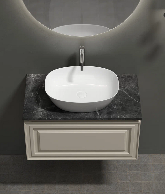 - Комплектация: Тумба под раковину Sancos Very 80, beige soft; Столешница в ванную под раковину Sancos TT80A1X, черный мрамор, с отв. под смеситель