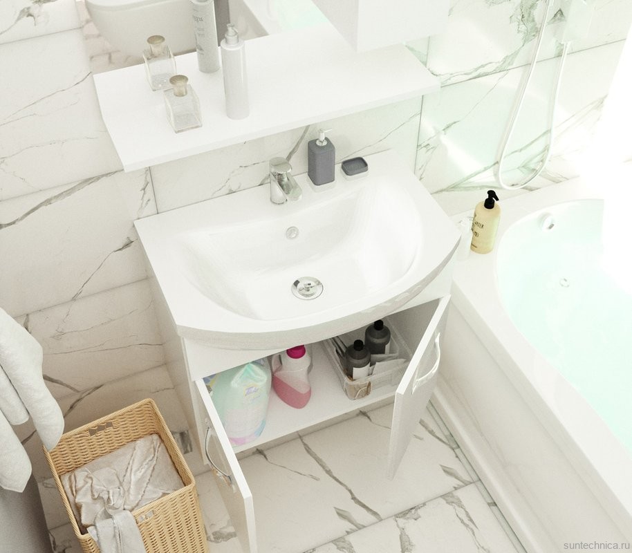 - Комплектация: Тумба под раковину 1MarKa Вита 65П, с 2 дверцами, белый глянец; Мебельная раковина Santek Балтика, 65