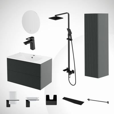 - Комплектация: Тумба под раковину Allen Brau Infinity 85, 1+1, подвесная, антрацит матовый; Столешница в ванную под раковину Allen Brau Infinity 85, мрамор; Накладная раковина Allen Brau Fantasy Quad, 50x36, белая матовая