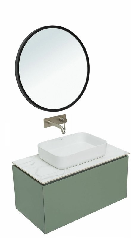 - Комплектация: Тумба под раковину Allen Brau Infinity 85, 1+1, подвесная, олива матовый; Столешница в ванную под раковину Allen Brau Infinity 85, мрамор; Накладная раковина Allen Brau Fantasy Quad, 50x36, белая матовая