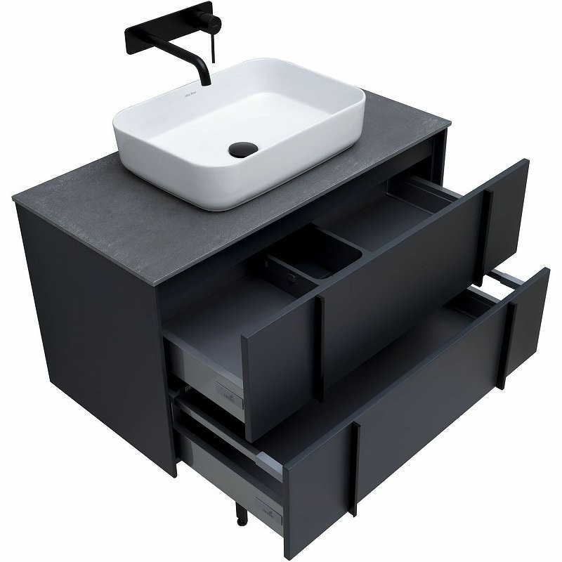 - Комплектация: Тумба под раковину Allen Brau Reality 80, подвесная, антрацит матовый; Столешница в ванную под раковину Allen Brau Reality 80, графит структ; Накладная раковина Allen Brau Fantasy Quad, 50x36, белая матовая