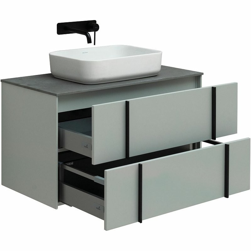 - Комплектация: Тумба под раковину Allen Brau Reality 90, подвесная, антрацит матовый; Столешница в ванную под раковину Allen Brau Reality 90, графит структ; Накладная раковина Allen Brau Fantasy Quad, 50x36, белая матовая