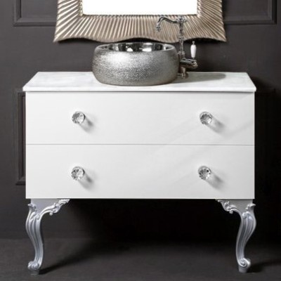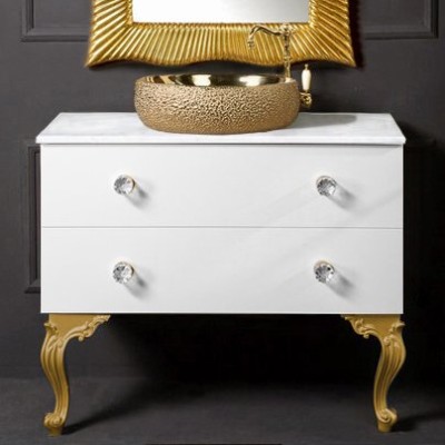 - Комплектация: Тумба под раковину Armadi Art NeoArt 100, белая; Столешница в ванную под раковину Armadi Art NeoArt; Накладная раковина Armadi Art NeoArt, серебро; Ножки для мебели Armadi Art NeoArt 35 см, золото, 2 шт.; Ручка для мебели Armadi Art NeoArt Flora золото