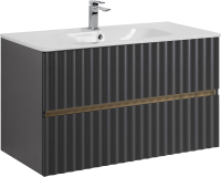 - Комплектация: Тумба под раковину Art&Max Elegant 100, подвесная, серая матовая; Мебельная раковина Art&Max AM7110-100, 100 см
