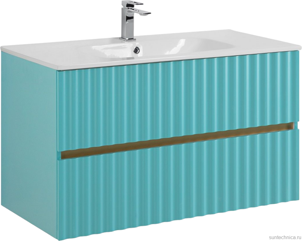 - Комплектация: Тумба под раковину Art&Max Elegant 100, подвесная, светло-зеленая матовая; Мебельная раковина Art&Max AM7110-100, 100 см