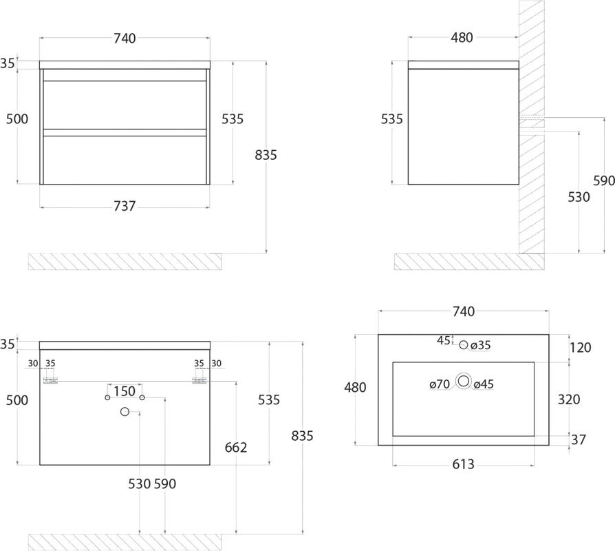 - Может комплектоваться следующими раковинами: Art&Max AM-LAV 75