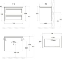 - Комплектация: Тумба под раковину Art&Max Platino, 75, подвесная, белый матовый; Мебельная раковина Art&Max AM-LAV 75