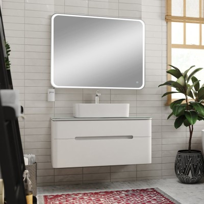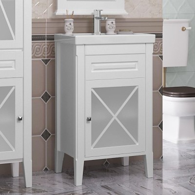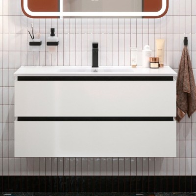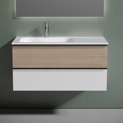 - Комплектация: Тумба под раковину ASB-Woodline Кастелло 100, подвесная, бежевая; Мебельная раковина Kirovit Фостер, 100