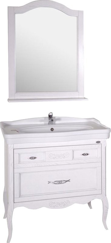 - Комплектация: Тумба под раковину ASB-Woodline Модерн 85, белая, патина серебро; Мебельная раковина Kirovit Модерн 85