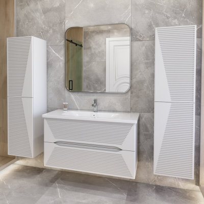 - Комплектация: Тумба под раковину ASB-Woodline Венеция 100, белая, патина серебро; Мебельная раковина Kirovit Фостер, 100