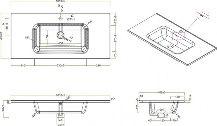 • Расположение столешницы раковины: С двух сторон