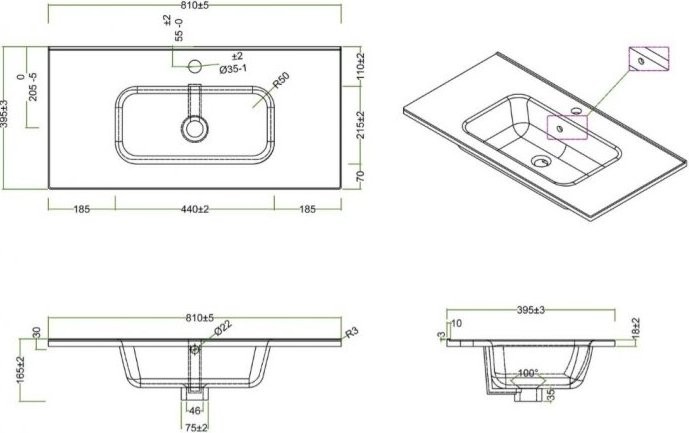 • Расположение столешницы раковины: С двух сторон