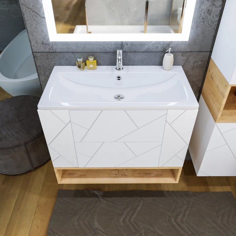 Тумба с раковиной Бриклаер Кристалл 90 белая матовая