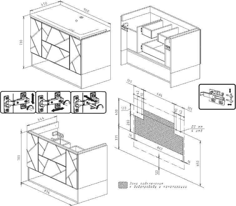 • Комплектация: Тумба под раковину Бриклаер Кристалл, 90 белая матовая; Мебельная раковина Paola Alba 900, врезная с отверстием под смеситель