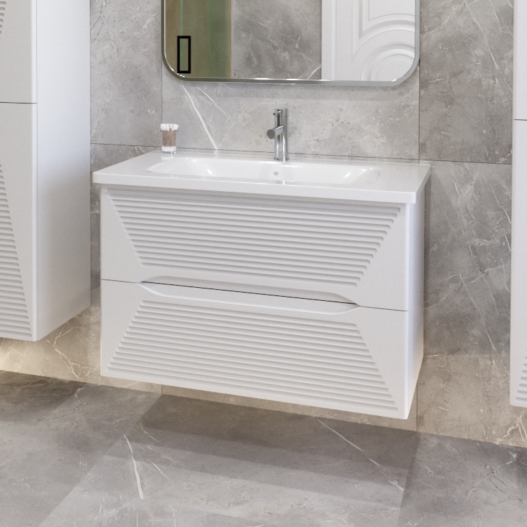 - Комплектация: Тумба под раковину Caprigo Modo Terza 80, подвесная, белая; Мебельная раковина Dreja Euphoria, 80