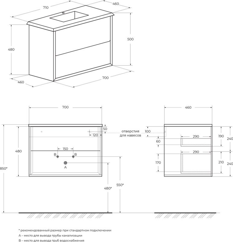 • Может комплектоваться следующими раковинами: Cezares Bellagio L 106 см, Bellagio R 106 см, Bellagio 60 см, Bellagio 176, Bellagio 50215 141 см, Bellagio 50212 71 см, Bellagio 50179 60 см