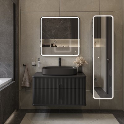 • Комплектация: Тумба под раковину Comforty Бредфорд 90, дуб темный; Мебельная раковина Comforty 90E, черная матовая