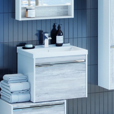 - Комплектация: Тумба под раковину Emmy Милли 80, белая глянцевая, 2 ящика; Мебельная раковина Santek Балтика 1WH501524, 80
