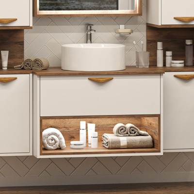 - Вид раковины: над стиральной машиной, накладная (мебельная)
