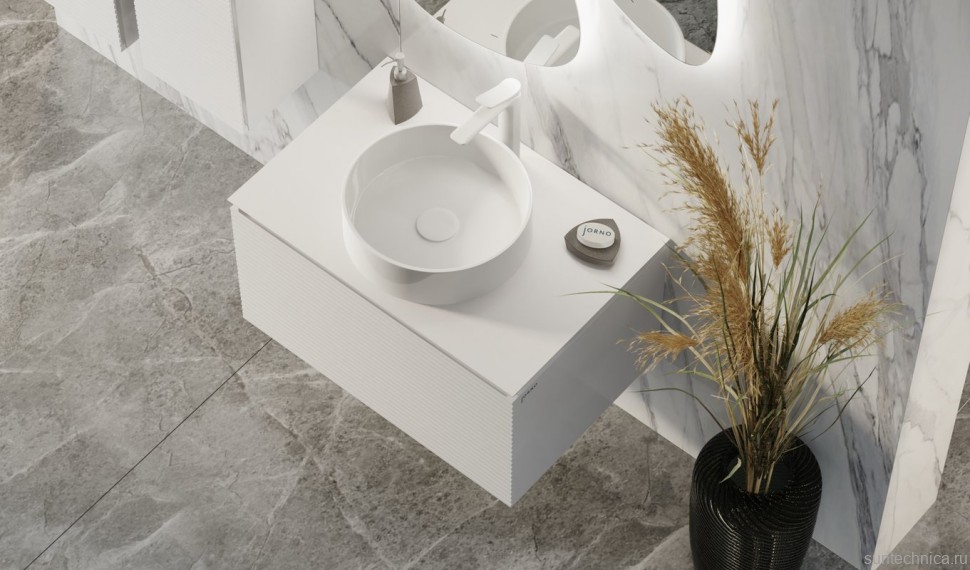 • Комплектация: Тумба под раковину Jorno Stone 80, белая; Накладная раковина Melana